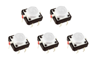 Een set van 5 tactiele drukknoppen van 12mm x 12mm met een interne witte led. De knoppen werken zoals een normale drukknop. De led heeft pootjes langs de knop welke aangesloten kunnen worden aan een IC om de led aan en uit te schakelen. Het is wel belangrijk om een weerstand te gebruiken bij het verbinden van de led.