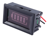 12V Batterij indicator display voor loodaccu's zoals een auto accu. Dit display kan direct op de accu spanning worden geplaatst zonder extra bedrading, het display bevat een voltage converter om het display zelf te voeden. Wanneer de batterij spanning onder 11,2V komt zijn alle 4 de blokjes leeg. Bij 12V branden 2 blokjes, bij 12,5V 3 blokjes en boven de 13,3V 4 blokjes.