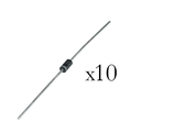 Een set van 10 rectifier diodes. Deze 1N5408 rectifier diodes hebben een maximale doorlaatspanning van 1000V en een maximale stroom van 3A.