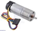 Deze gearmotor bestaat uit een krachtige 12 V brushed DC motor gecombineerd met een 20,4: 1 metalen gearbox, en heeft een geïntegreerde 48 CPR kwadratuur-encoder op de motoras, die 979,62 tellingen per omwenteling van de uitgaande as van de gearbox levert. De gearmotor is cilindrisch, met een diameter van iets minder dan 25 mm, en de D-vormige uitgaande as heeft een diameter van 4 mm en steekt 12,5 mm uit vanaf de voorplaat van de gearbox. Deze gearmotor is ook leverbaar zonder encoder.