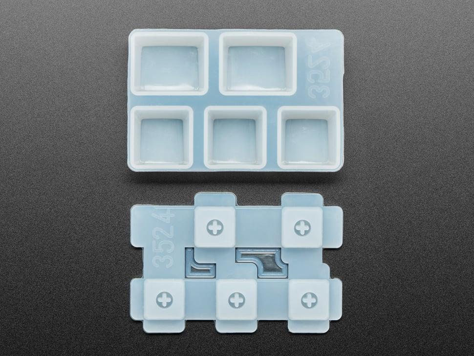 Eenmaal gegoten, passen de toetsen op elke Cherry MX-compatibele toetsschakelaar. Wordt geleverd met een tweedelige mal met drie 1U-mallen en twee 1,25U-mallen.