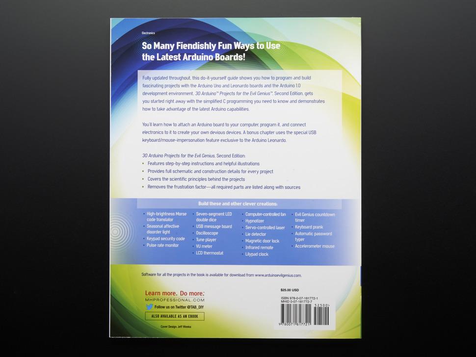Deze inventieve gids laat zien hoe je allerlei projecten kunt programmeren en bouwen met behulp van het Arduino microcontrollerontwikkelingssysteem, dat compatibel is met Windows, Mac en Linux. Met '30 Arduino Projects for the Evil Genius' leer je de vereiste vaardigheden voor vereenvoudigde C-programmering, zelfs als je geen eerdere programmeerervaring hebt.