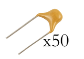 Een set van 50 keramische condensatoren. Deze keramische condensatoren hebben een capaciteit van 33nF met een tolerantie van 10%. De condensatoren kunnen worden aangesloten op een spanning van maximaal 50V.