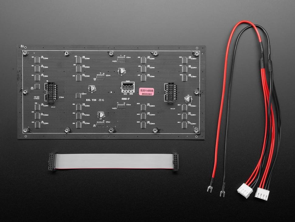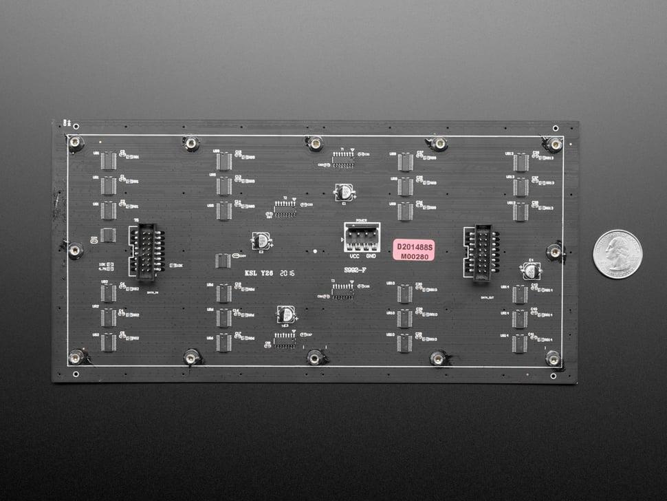 Dit LED-paneel lijkt op een rigide 64x32 matrix, maar heeft een buigzame PCB-achterkant, waardoor het flexibel is om zich rond oppervlakken te buigen. Houd er rekening mee dat flexibele PCB's niet ontworpen zijn om herhaaldelijk te buigen.