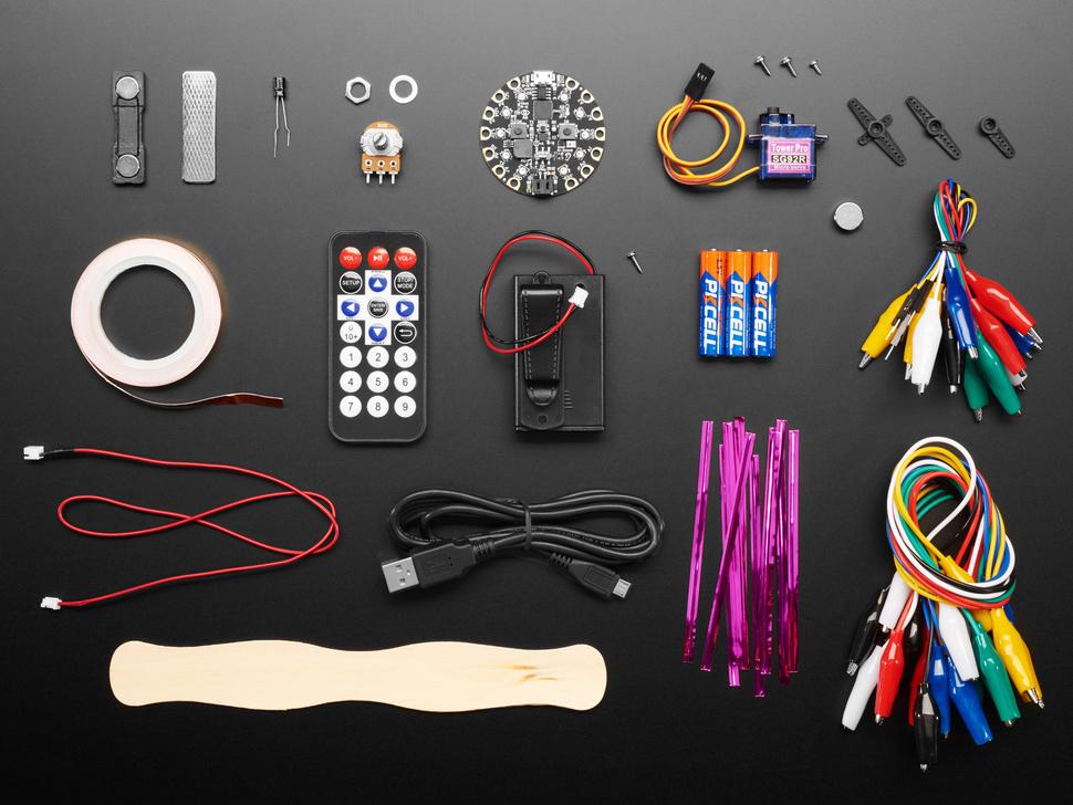 Deze box bevat essentiële componenten zoals een USB kabel, krokodillenklemmen, een microservo en meer. Creëer moeiteloos unieke elektronische projecten met de magnetische pin aan de achterkant, koperfolietape en mini-afstandsbediening. Voorzie je creaties van stroom met de meegeleverde AAA-batterijhouder met riemclip, voor draagbaarheid en gemak.