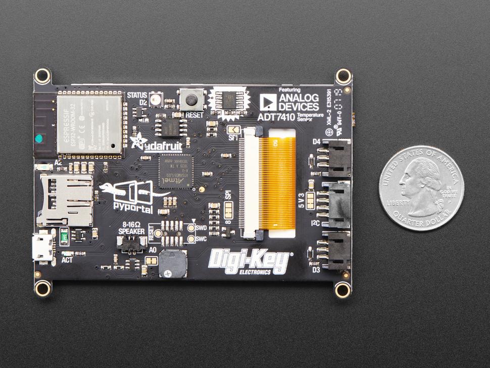 PyPortal is uitgerust met uitgebreide hardwarefuncties, waaronder een helder touchscreen, luidspreker, lichtsensor, NeoPixel, microSD-kaartslot en meer. Met CircuitPython fungeert het ook als USB stick, waardoor codebewerkingen via elke gewenste IDE mogelijk zijn.