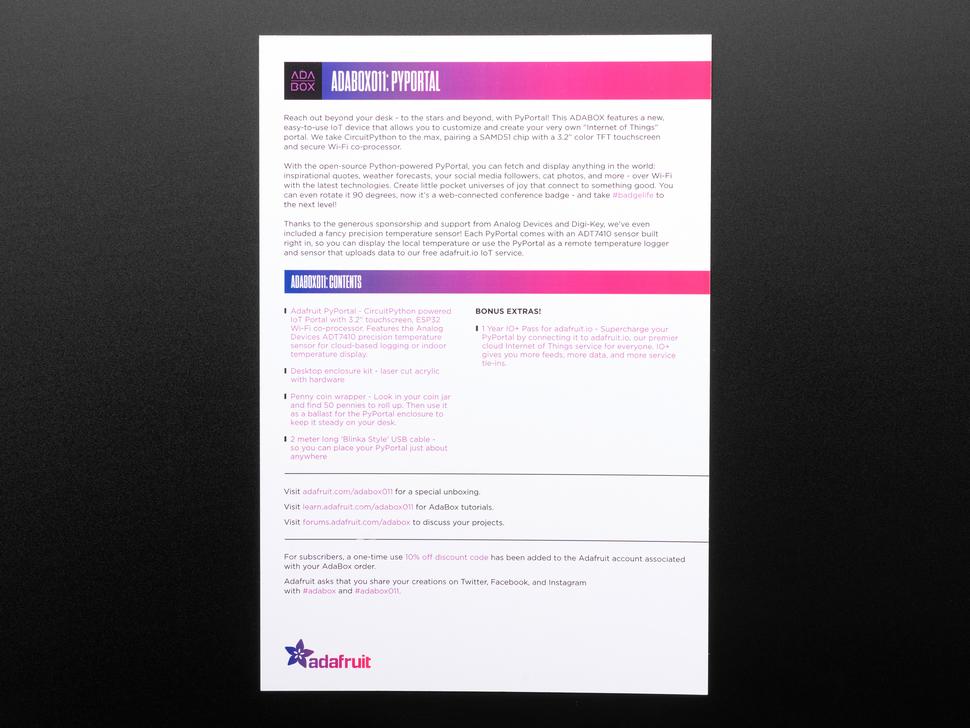 Ontketen nieuwe connectiviteit met PyPortal, uw persoonlijke IoT-hub, tot leven gebracht door CircuitPython. Dit apparaat is uitgerust met een SAMD51-chip en een intuïtief 3,2-inch TFT-kleurentouchscreen, en is gekoppeld aan een beveiligde wifi-coprocessor, waardoor het ideaal is voor baanbrekende technologieliefhebbers.