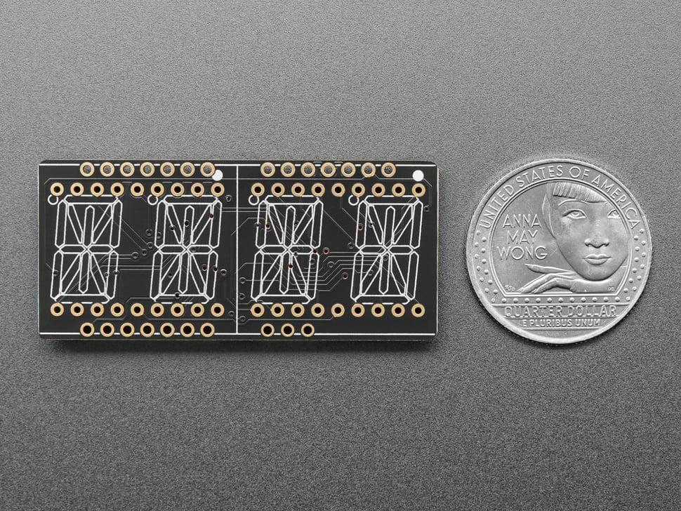 De productkit bevat een volledig gemonteerde Adafruit FeatherWing met 4-cijferig 14-segment alfanumeriek display en twee zestien-pins headers . Een snelle soldeerbeurt is vereist, maar duurt slechts enkele minuten.