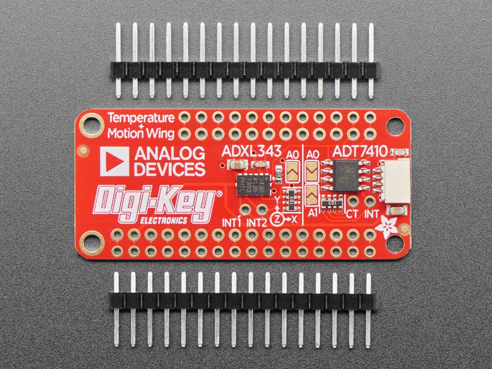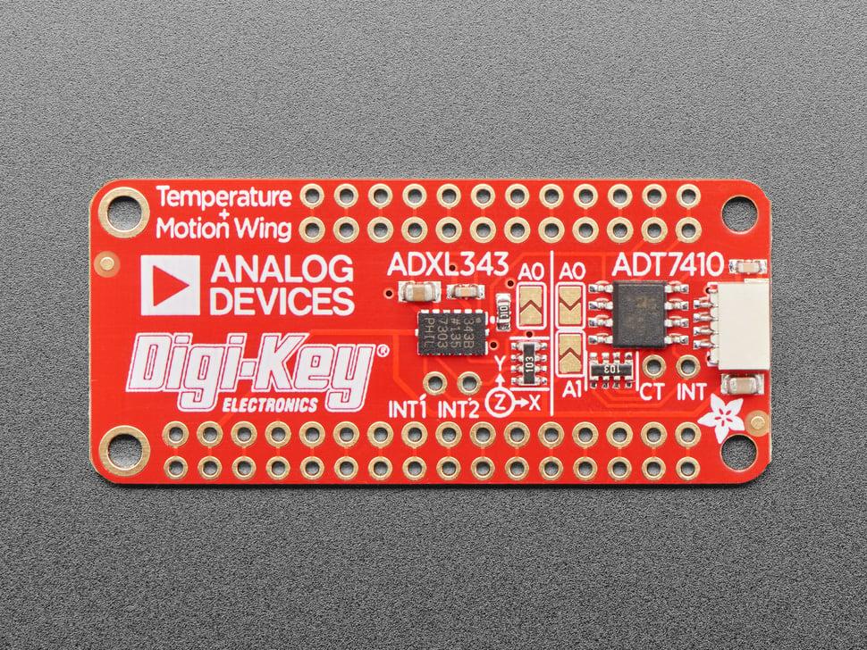 Upgrade elk feather met board en nauwkeurige temperatuursensor met deze alles-in-één FeatherWing . Hij is voorzien van twee uitzonderlijke sensoren van Analog Devices: de ADXL343 drieassige accelerometer en de ADT7410 precisietemperatuursensor. Beide sensoren zijn naadloos geïntegreerd via de gedeelde I²C-bus, waardoor compatibiliteit met alle feather gegarandeerd is.