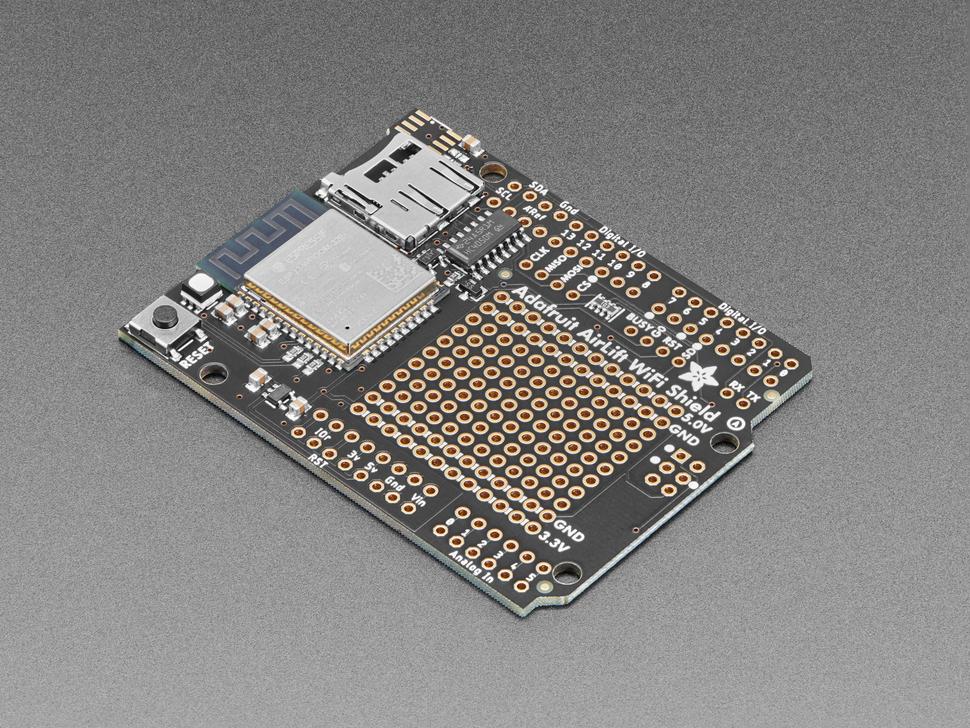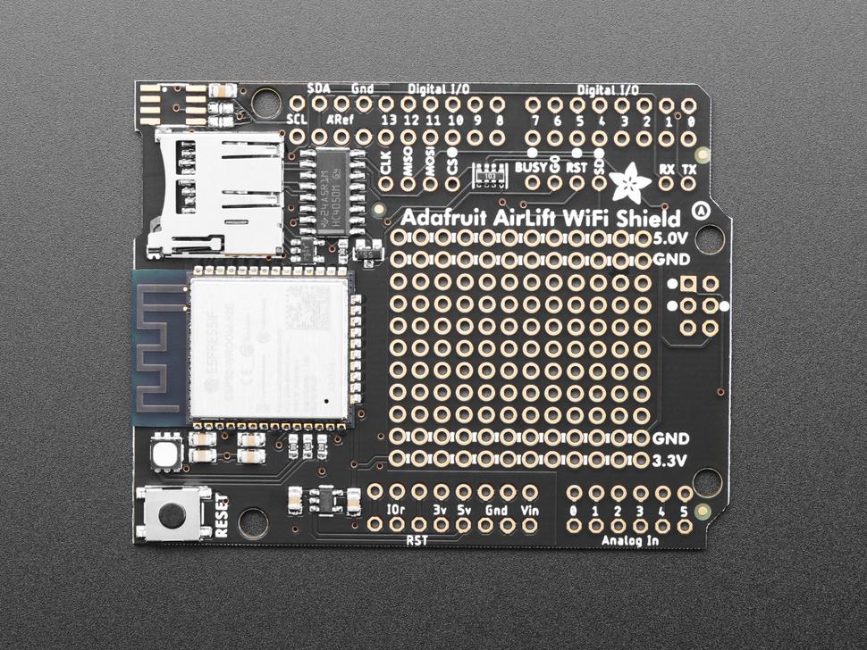 Ons ontwerp omvat een micro SD- socket voor internetgegevensbeheer en een tri-state chip voor het delen van SPI-bussen. Let op: de ATmega328 kan de wifi- en SD- library niet tegelijkertijd uitvoeren vanwege RAM-beperkingen. Dit shield is voorgemonteerd en uitgerust met ESP32 SPI wifi-firmware en ondersteunt zowel Arduino als CircuitPython-projecten naadloos.