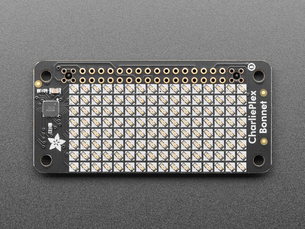 Je zult je ogen niet kunnen afhouden van de betoverende patronen die dit Adafruit CharliePlex LED Matrix display Bonnet creëert. Dit 16x8 LED- display kan op elke Raspberry Pi met een 2x20 connector worden geplaatst voor een prachtig, helder raster van 128 CharliePlex LED's. Het wordt zelfs geleverd met een ingebouwde CharliePlex- driver die via I²C werkt.