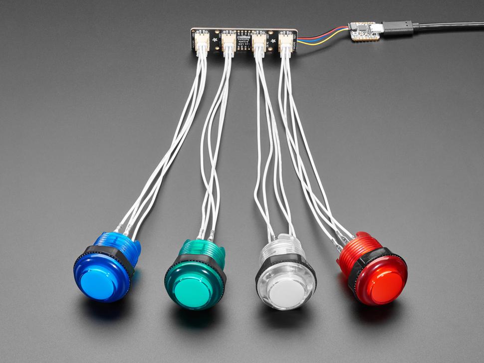 Verbeter uw bedieningsinterface met ondersteuning voor Arduino en CircuitPython/Python library , waardoor het maken van lichtgevende knoppendisplays met elke compatibele microcontroller of computer eenvoudiger wordt. Let op: voor de bediening is een microcontroller vereist. LED-arcadeknoppen en JST XH-snelkoppelingskabels worden apart verkocht.