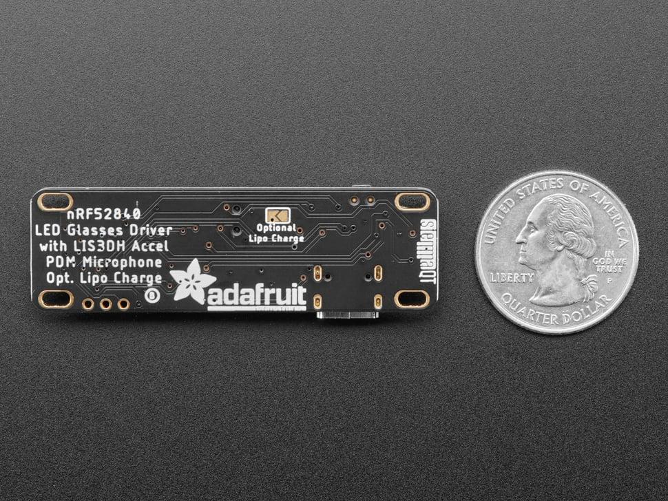 Dit slanke en veelzijdige Bluetooth- driver is board ontworpen voor de Adafruit LED Glasses RGB LED-matrix en fungeert tevens als een robuust, zelfstandig board voor de Nordic nRF52840-chipset. Het compacte ontwerp biedt optionele ondersteuning voor LiPo-accu's, geïntegreerde sensoren en een STEMA QT-poort voor naadloze I²C-apparaataansluitingen.