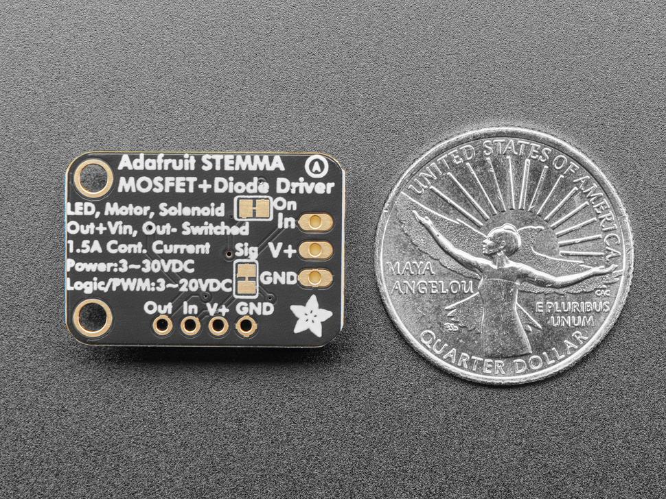 Maak kennis met de Adafruit STEMMA MOSFET- driver , ontworpen voor motoren, solenoïden en leds. Deze board biedt een soldeerloze plug-and-play-ervaring met een JST PH-ingangsconnector die een spanningsbereik van 3 V tot 30 V ondersteunt. Met een AO3406 N-kanaal MOSFET en een 1N4007 flybackdiode beheert hij efficiënt apparaten die continu tot 1,5 ampère verbruiken.
