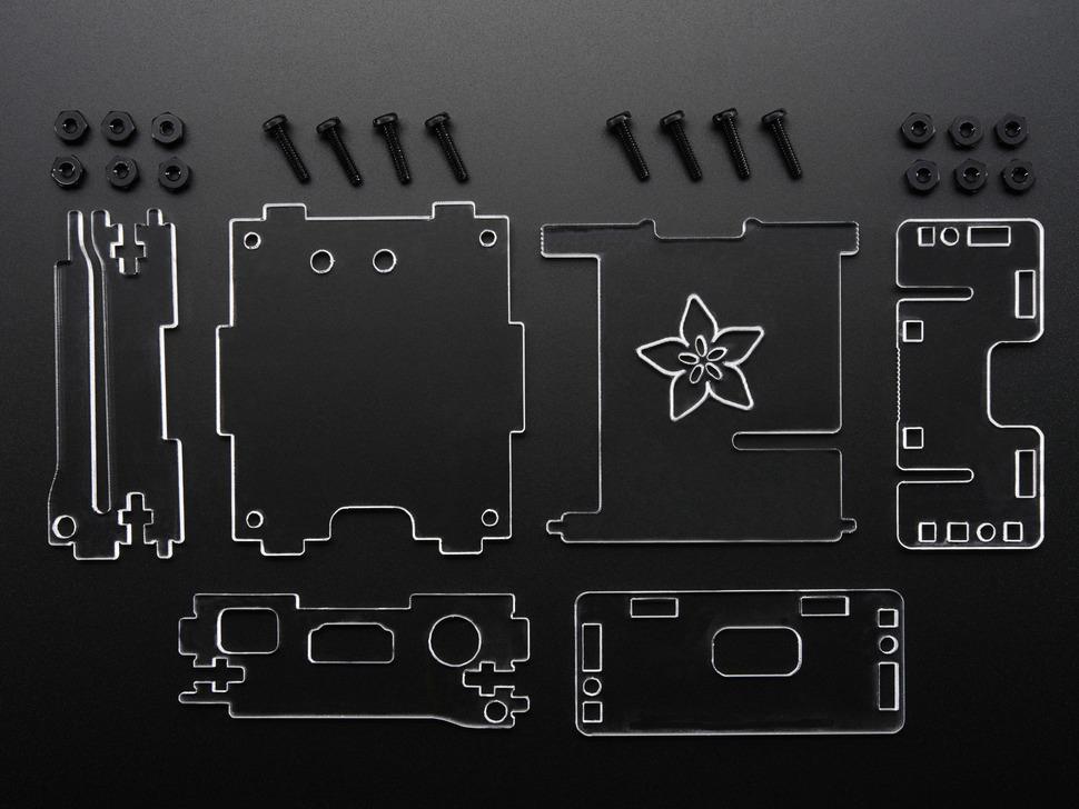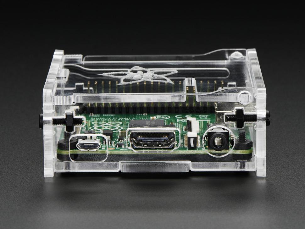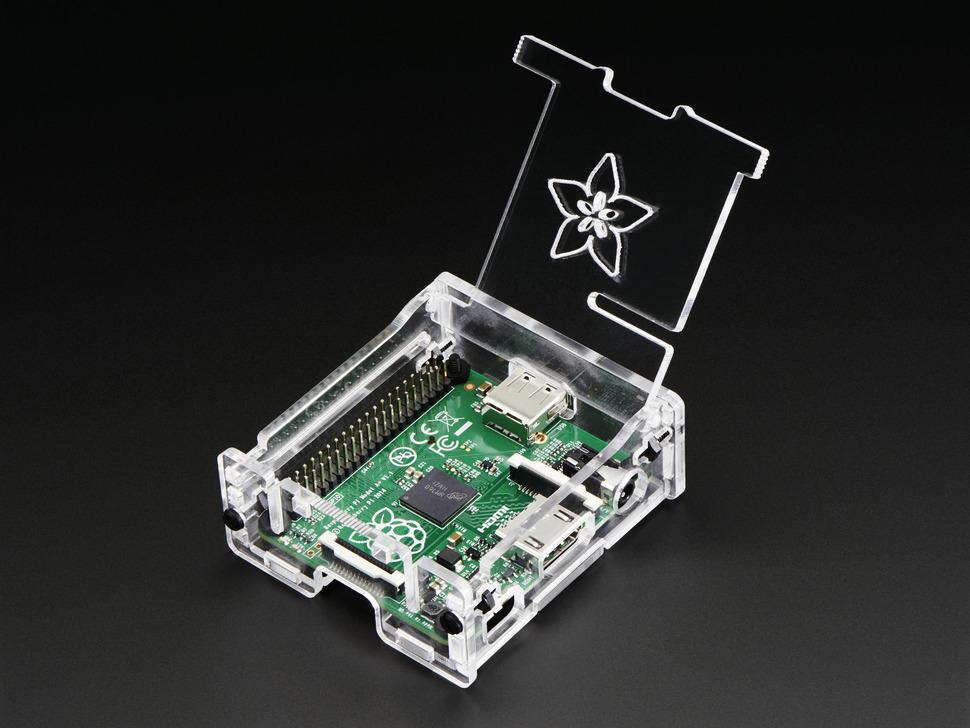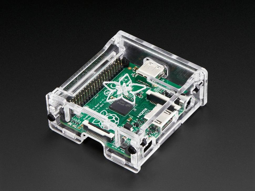 PaintYourDragon maakt een verbluffende lasergesneden update van de Adafruit Pi Box voor de Raspberry Pi Model A+. Deze slanke, doorzichtige acrylbehuizing beschermt je Raspberry Pi ® Model A+ en laat tegelijkertijd de binnenkant zien.