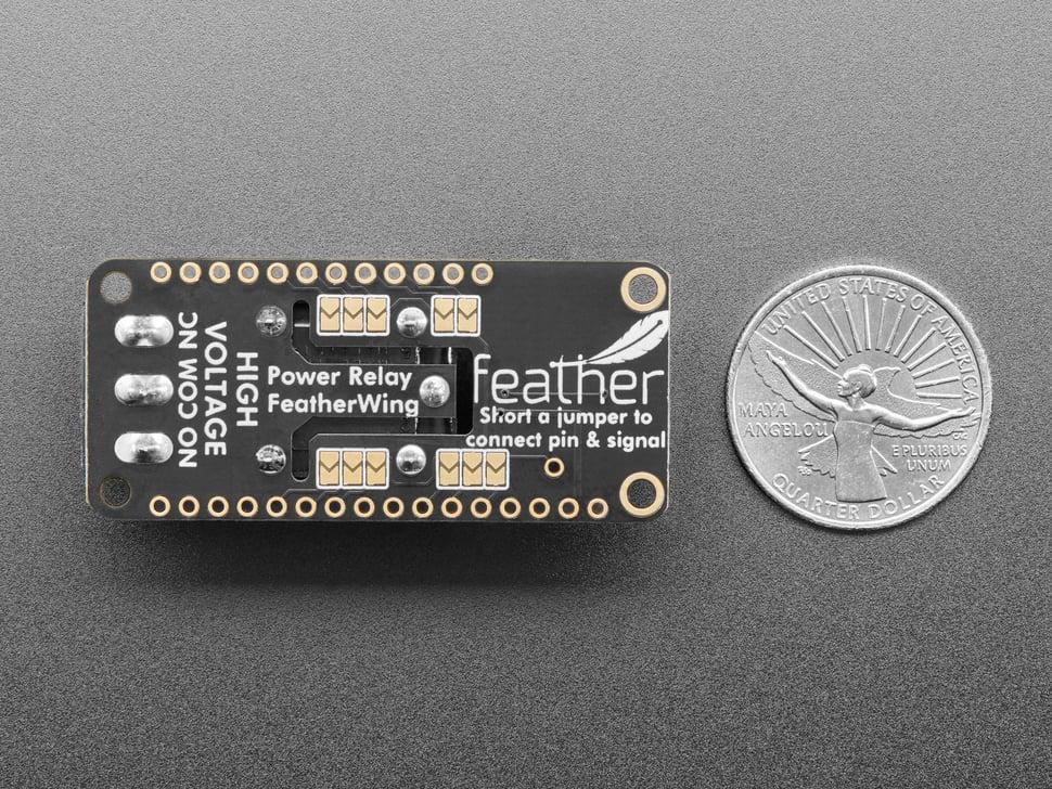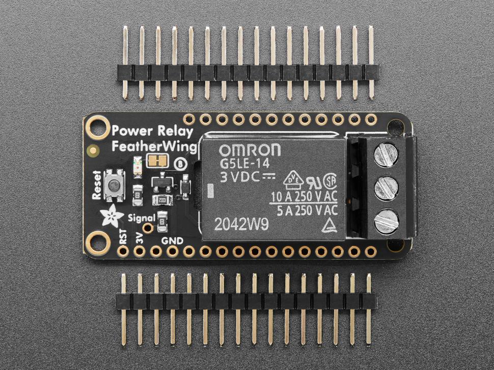 Werkt met al onze feather . Sluit de relaisbesturingspin gewoon aan op de GPIO board je keuze! Met onze feather Stacking- headers of feather female headers kun je een FeatherWing op je feather aansluiten en het board laten vliegen.