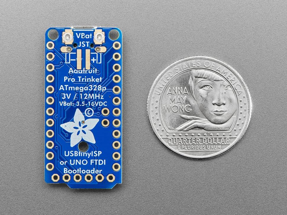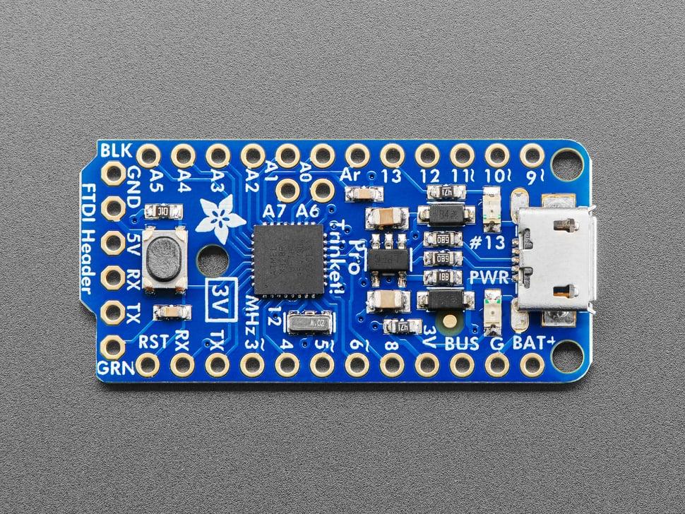 De Pro trinket 3V biedt de compacte functionaliteit van een volwaardige Arduino met de Atmega328P-chipset, perfect voor innovatieve kleinschalige projecten zonder dat dit ten koste gaat van de prestaties.