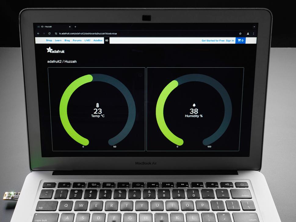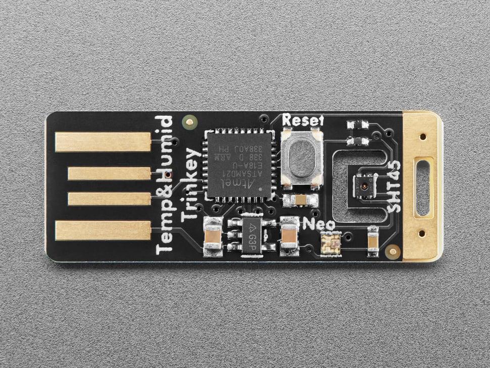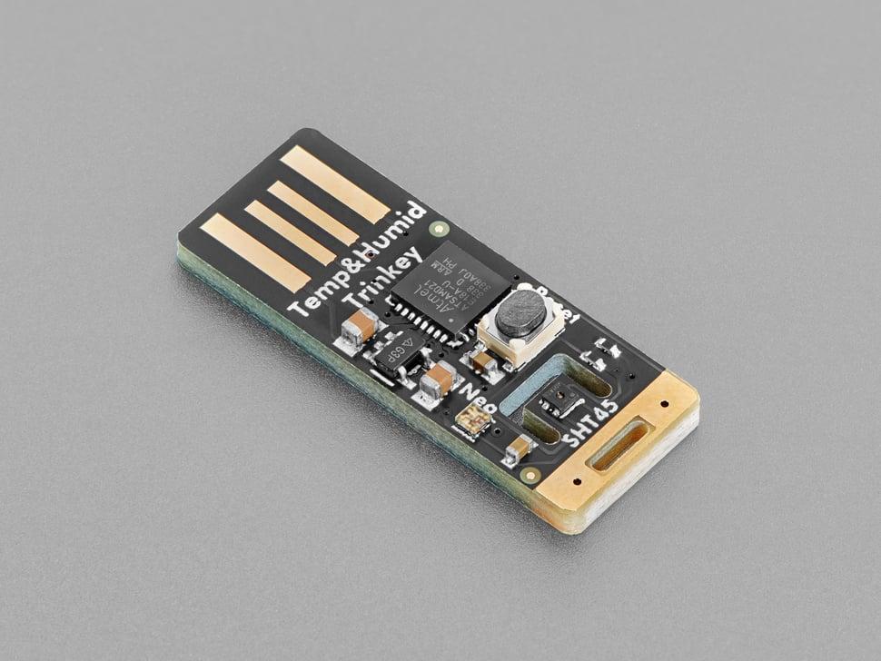 De Adafruit SHT45 Trinkey, half USB stick en half temperatuur-vochtigheidssensor, is ontworpen voor moeiteloze integratie in elke computer met een USB A-poort. De compacte printplaat past gemakkelijk in elke USB A- socket en transformeert uw apparaat in een slimme tool voor omgevingsmonitoring.