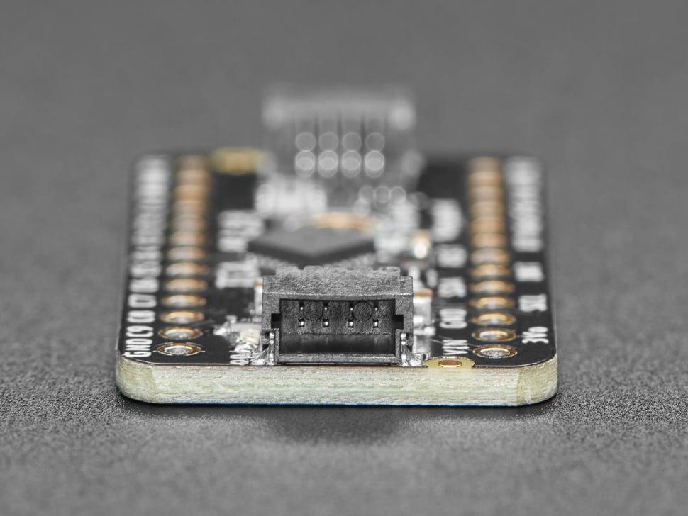 De op maat gemaakte printplaat volgt de STEMMA QT-vormfactor, wat de integratie vereenvoudigt. Uitgerust met een 3,3V-regelaar en I²C-lijnniveauverschuiving, is hij compatibel met 3V- of 5V-microcontrollers. De connectoren zijn compatibel met Sparkfun Qwiic I²C-connectoren voor eenvoudige, soldeerloze koppeling met andere apparaten.