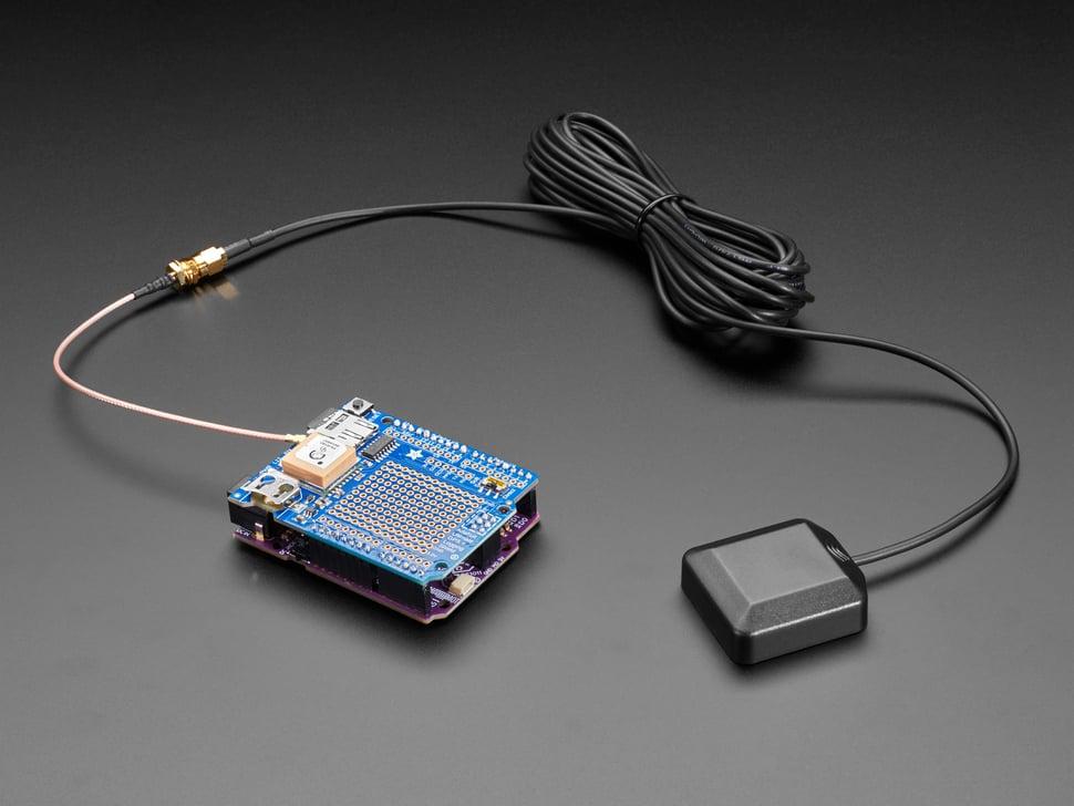 Het shield is voorgemonteerd en getest en beschikt over een ingebouwde patchantenne, leds voor de voedingsstatus en een royale prototyping-ruimte. Het is specifiek ontworpen voor de Arduino Uno, Duemilanove, Diecimila en Leonardo, maar is niet compatibel met de Mega-, ADK- en Due-modellen.
