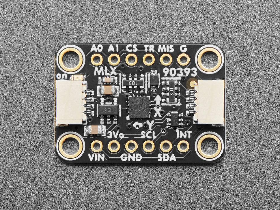 De MLX90393 magnetometer legt het onzichtbare vast en biedt dankzij zijn uitzonderlijke gevoeligheid een unieke blik op de magnetische wereld. Met een breed bereik van ±5mT tot ±50mT over alle drie de assen is deze sensor perfect voor het detecteren van sterke magneten en het bepalen van magnetische oriëntaties, en overtreft daarmee de mogelijkheden van standaard aardmagnetometers.
