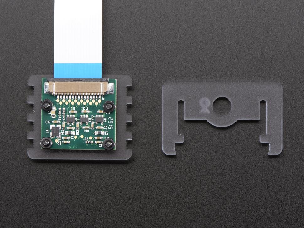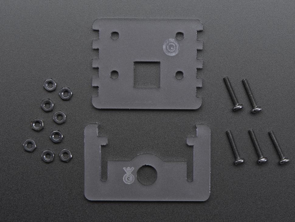 Elk pakket wordt geleverd met een tweedelige kunststof beugel, 5 minischroeven en 7 zeskantmoeren, voor een stabiele opstelling. Let op: de Pi-camera en het statief worden apart verkocht. Daarnaast kan een zeskantmoer van 1/4"-20 nodig zijn voor de bevestiging van het statief. Deze is verkrijgbaar bij de meeste bouwmarkten.