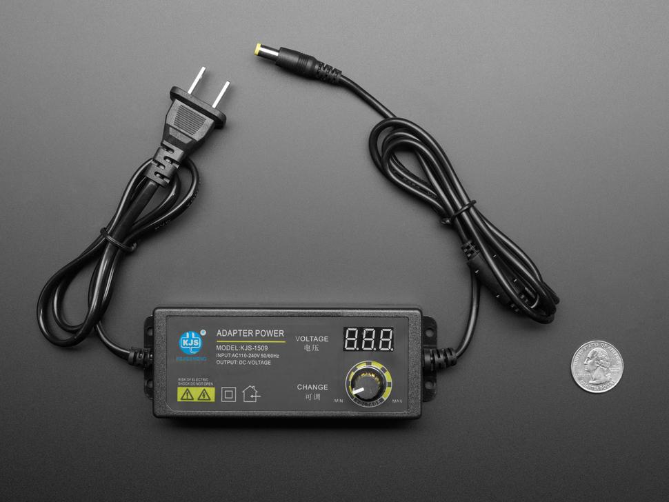 Met al die regelbare spanning is deze voeding een geweldig hulpmiddel voor elke doe-het-zelver, voor elk robotica- of elektronicaproject. We zijn dol op deze voeding als enige desktopvoeding wanneer we geen stroombegrenzing of stroommeting nodig hebben. We kunnen hem instellen op 3V, 5V, 6V, 9V of 12V, afhankelijk van het apparaat waarmee we werken. We hebben ook een schakelende voeding met een 3-12VDC- output van 1,5 Ampère en een selecteerbare uitgang en een bereik van DC-stekkers.