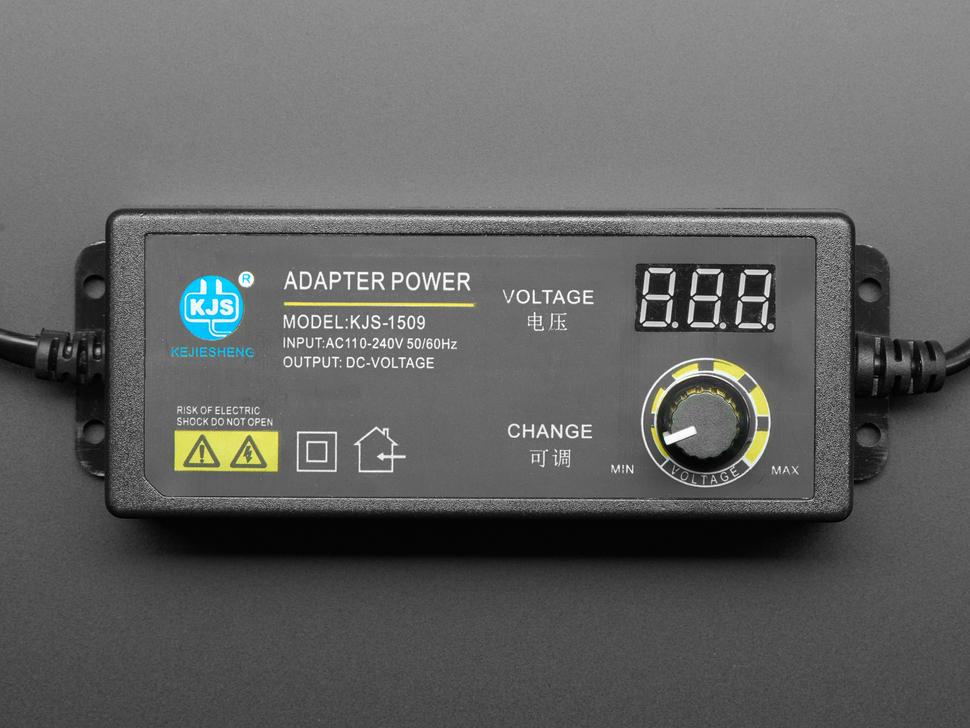 Adafruit Regelbare voeding met 2,1 mm / 5,5 mm DC - 3 V tot 12 V bij 5 A