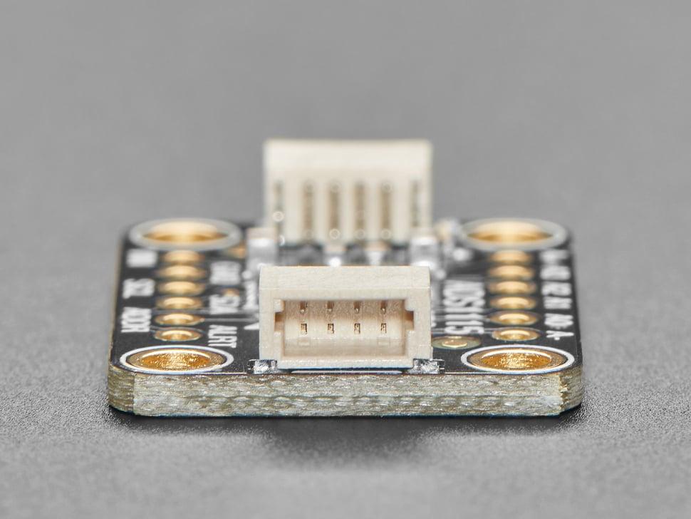 De chip is vrij klein, dus hij komt op een breakout-bord met ferrieten om de AVDD en AGND stil te houden. Interfacing gebeurt via I2C. Het adres kan worden gewijzigd in een van de vier opties (zie de datasheet, tabel 5), zodat u maximaal 4 ADS1115's kunt aansluiten op een enkele 2-draads I2C-bus voor 16 single-ended inputs.