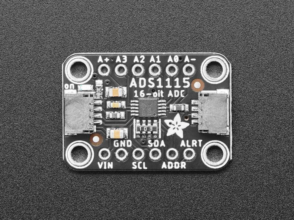 Voor microcontrollers zonder een analoog-naar-digitaal-converter of wanneer u een ADC met een hogere precisie wilt, biedt de ADS1115 16-bits precisie bij 860 samples / seconde via I2C. De chip kan worden geconfigureerd als 4 single-ended ingangskanalen of twee differentiële kanalen. Als een leuke bonus bevat het zelfs een programmeerbare gain amplifier, tot x16, om kleinere enkele / differentiële signalen naar het volledige bereik te versterken. We houden van deze ADC omdat hij kan werken van 2V tot 5V vermogen / logica, een groot bereik aan signalen kan meten en super eenvoudig te gebruiken is. Het is een geweldige 16 bit converter voor algemeen gebruik.