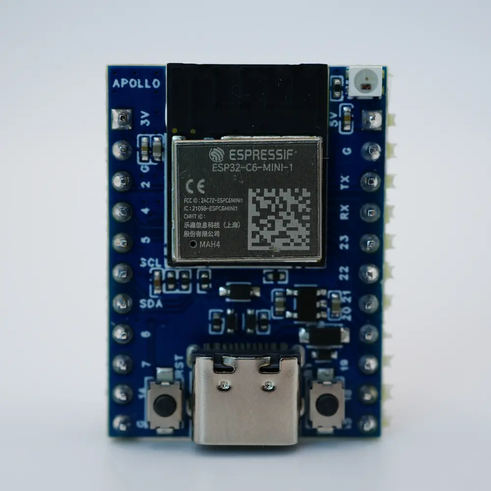 De Apollo DEV-2 is een compact en krachtig board gebouwd rond de ESP32-C6-MINI-1-chip, dat wifi, Bluetooth, Thread en Zigbee-connectiviteit combineert in één module. Dit maakt het een uitstekende basis voor smart home-, IoT- en automatiseringsprojecten waarbij draadloze communicatie essentieel is. Met USB -C voor zowel stroom als data, en toegankelijke GPIO- en I²C-interfaces, is het klaar voor snelle integratie met diverse sensoren en randapparatuur. Een ingebouwde RGB-led op GPIO 3 biedt nuttige visuele feedback tijdens ontwikkeling en debuggen. De voorgesoldeerde headers zorgen voor eenvoudig gebruik met breadboards en jumper wires direct uit de doos. Of je nu een Home Assistant-knooppunt bouwt of experimenteert met draadloze protocollen, de DEV-2 biedt je een betrouwbaar en flexibel platform om mee te beginnen.