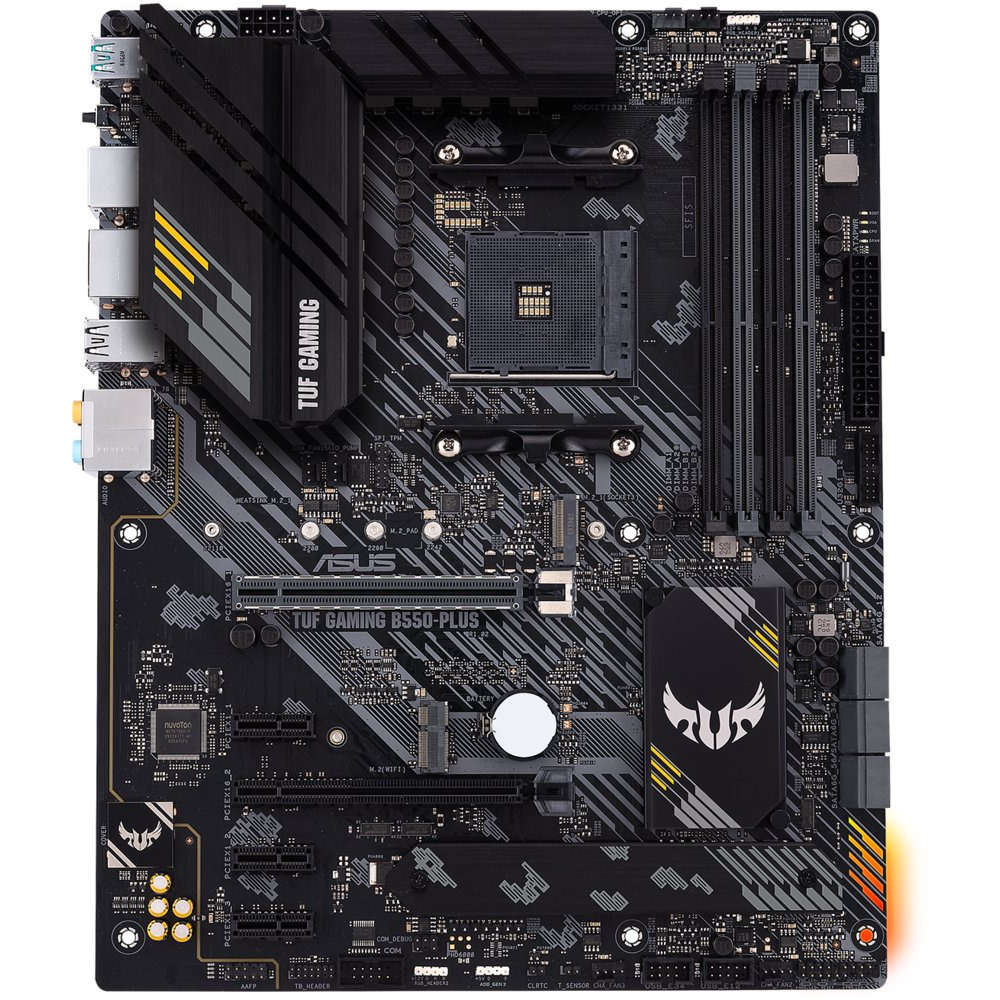 De ASUS TUF Gaming B550-PLUS moederbord is ontworpen voor duurzaamheid en top prestaties, waardoor het een ideale basis is voor krachtige AMD Ryzen processors.
