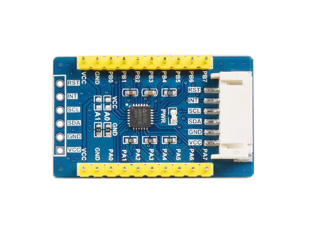 Breid je elektronische projecten moeiteloos uit met de AW9523B IO Expansion Board. Hiermee voeg je eenvoudig 16 extra I/O-pinnen toe via een gebruiksvriendelijke I2C-interface, waardoor de mogelijkheden van je apparaat worden vergroot zonder gedoe met ingewikkelde bedrading.