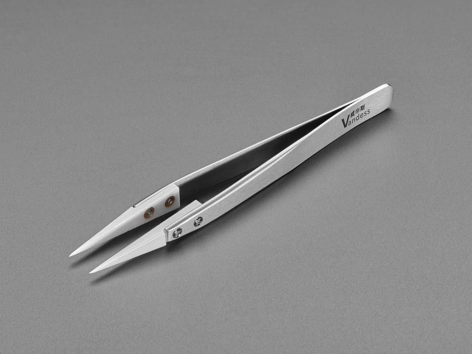 Je hebt een goede pincet nodig als je delicate SMD/SMT-componenten gaat solderen. Dit is een geweldig paar precieze, hittebestendige pincetten. Ze hebben een metalen lichaam en keramische inzetstukken, dus ze zijn anti-magnetisch en zullen niet buigen bij gebruik.