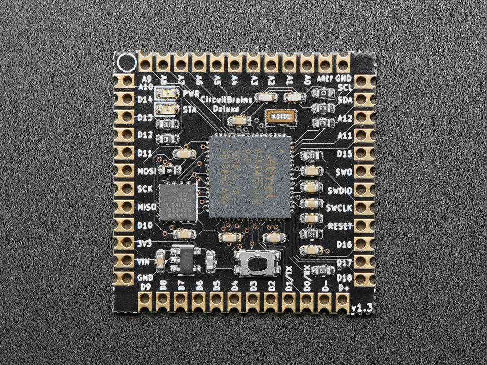 Het hart van CircuitBrains Deluxe is de Microchip ATSAMD51J19 32-bits ARM Cortex M4, met een kloksnelheid tot 120 MHz en 8 MB Quad SPI-flashgeheugen, wat ruim voldoende ruimte biedt voor projecten. Ondanks zijn mogelijkheden measures het board slechts iets groter dan 2,5 cm², waardoor het ideaal is voor compacte ontwerpen.