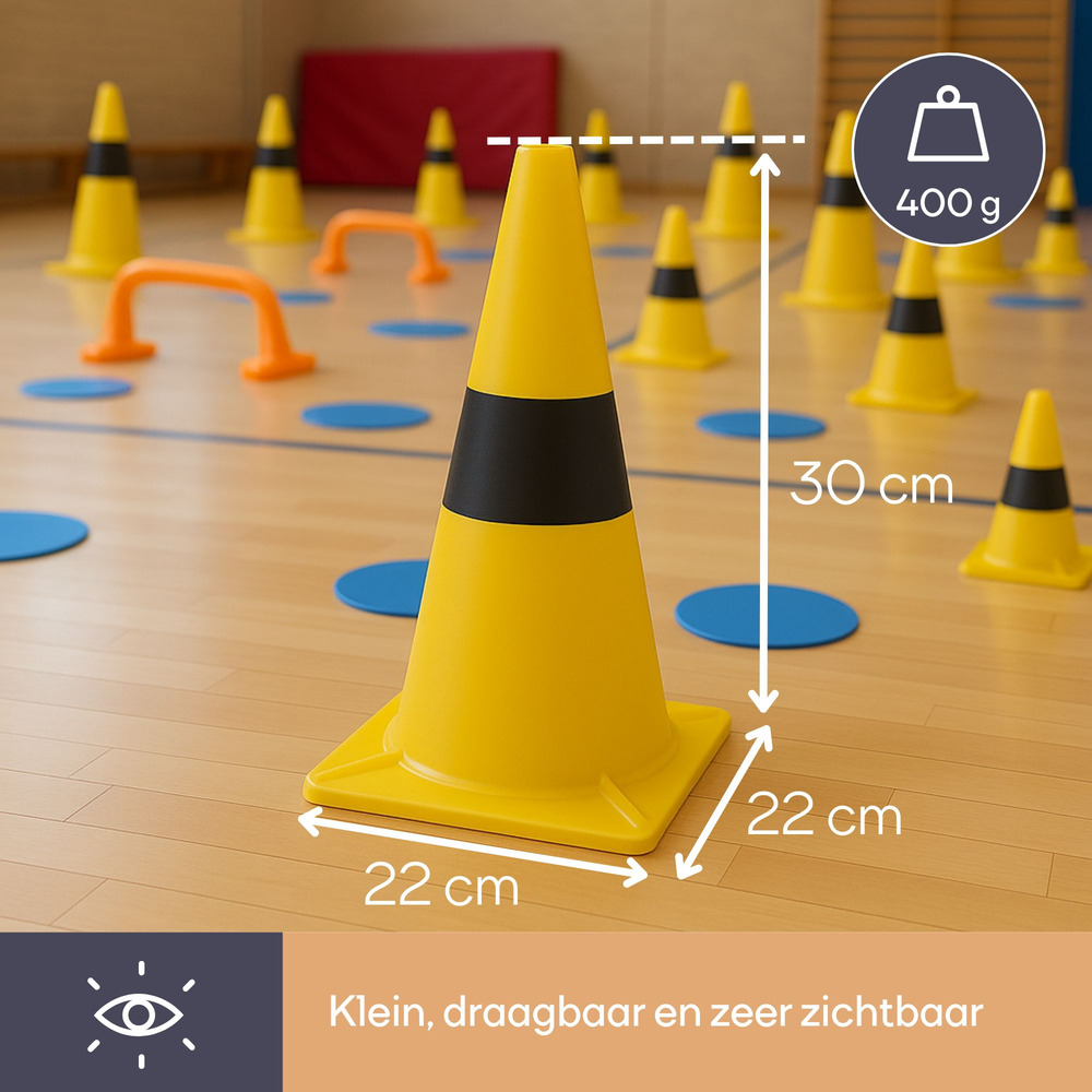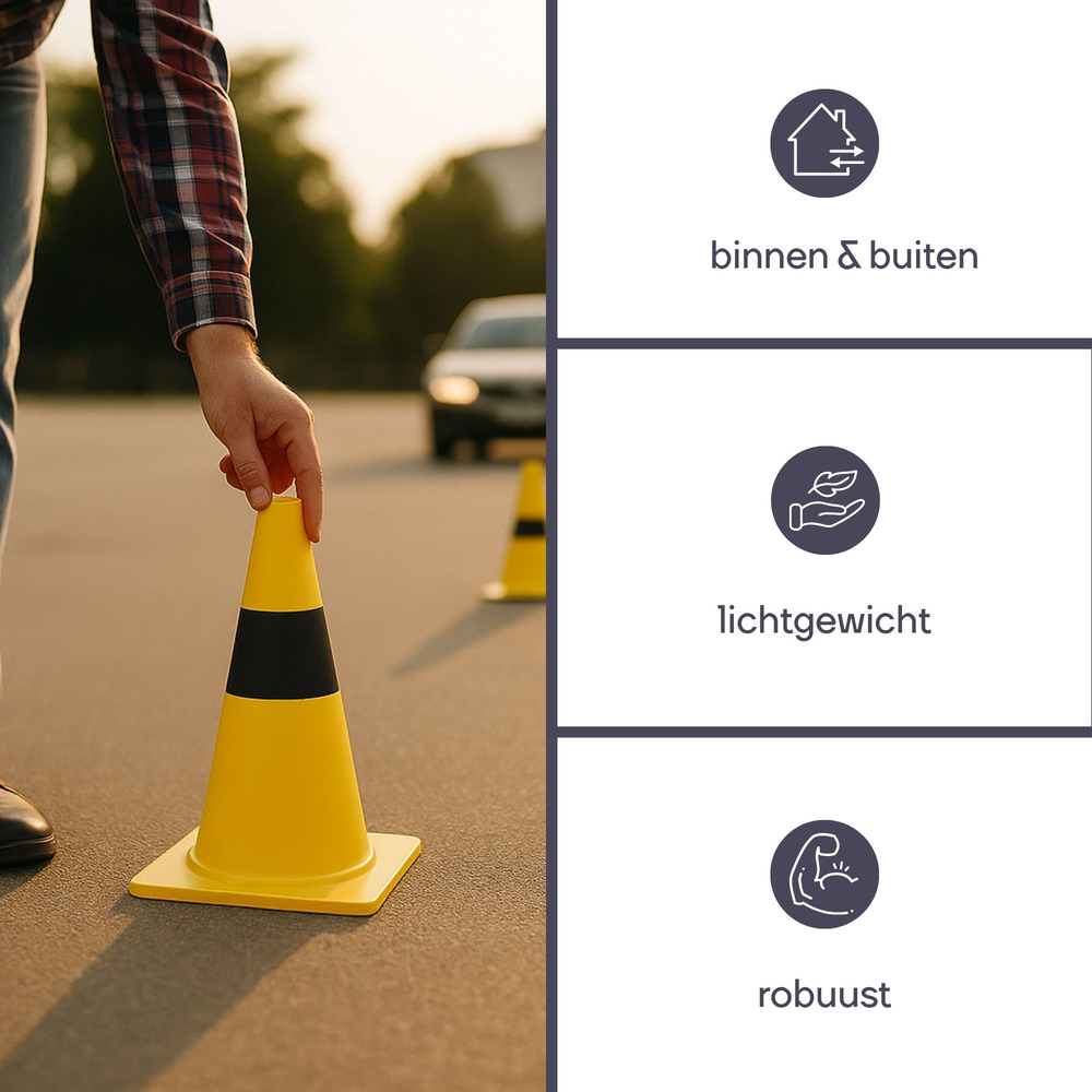 Het stabiele ontwerp zorgt ervoor dat de kegel stevig op zijn plek blijft, zelfs als het een beetje lastig wordt. Gebruik 'm op scholen om speelplaatsen af te bakenen, bij sportclubs om velden te markeren, of op bouwplaatsen voor veiligheidszones.