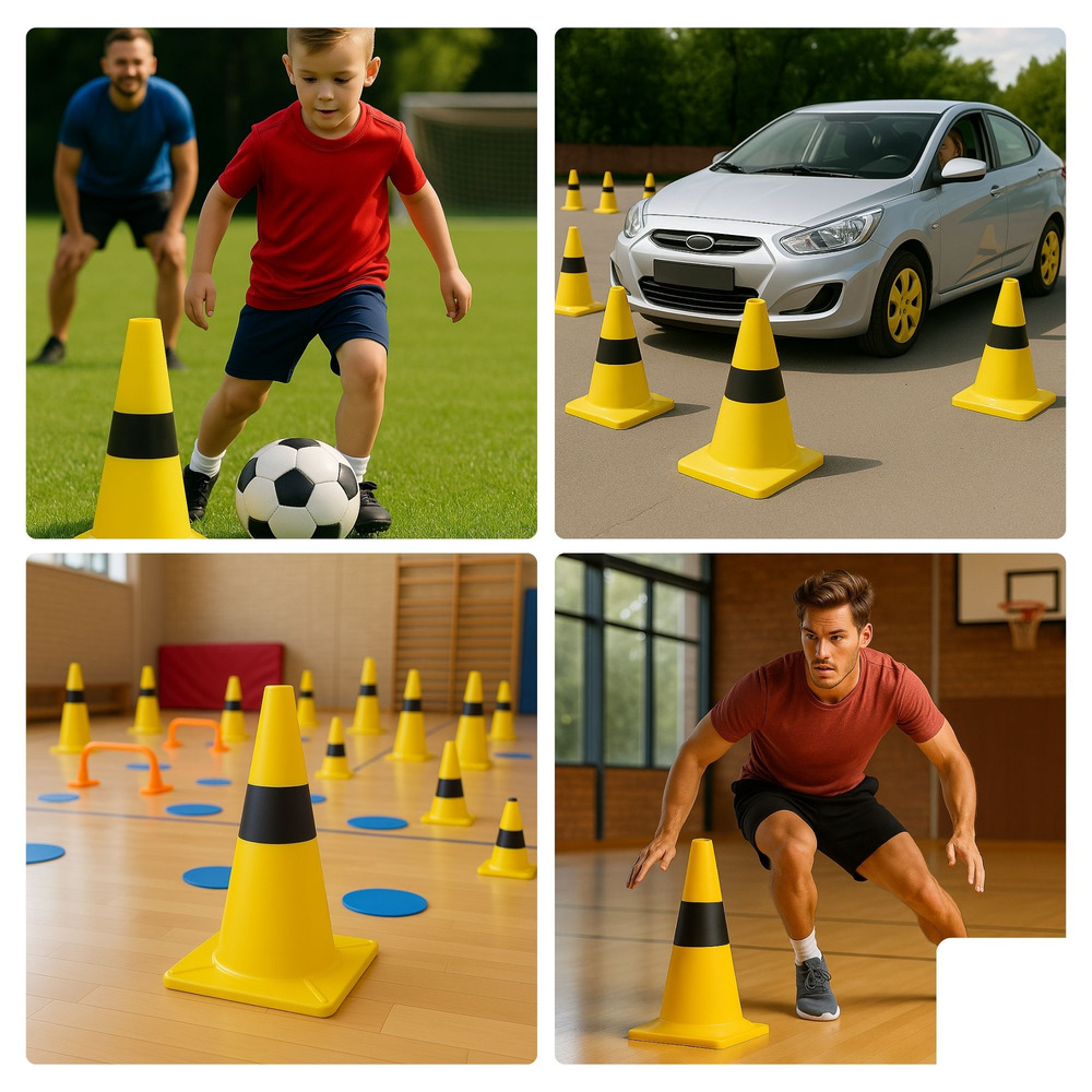 Zijn veelzijdigheid maakt deze kegel perfect voor rijscholen om verkeerssituaties na te doen. Door het duurzame materiaal kan hij goed tegen slijtage van veel verplaatsen. Deze kegel is een onmisbaar hulpmiddel voor plekken waar duidelijke markering nodig is.