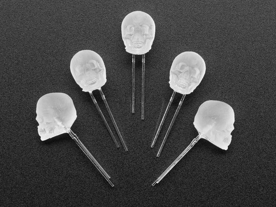 Natuurlijk hebben we allerlei soorten diffuse leds in allerlei kleuren en maten. Maar heb je je ogen wel eens laten vallen op deze griezelige set schedelvormige leds? Deze zien er te schattig en charmant uit en zullen geweldig staan bij elk elektronicaproject met een magisch of wetenschappelijk thema.
