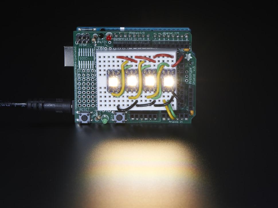 Deze 5050 (5 mm x 5 mm) SMD-leds zijn eenvoudig te solderen en perfect voor compacte en efficiënte ontwerpen. Ze vormen een uitstekende upgrade voor gebruikers die bekend zijn met NeoPixels. Ze bieden dezelfde embedded microcontrollertechnologie, maar dan gericht op monochroom gebruik.