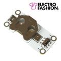 Deze speciaal ontworpen e-textiles knoopcelhouder van Kitronik heeft grote aansluitpunten voor de geleidende draad. Deze zijn duidelijk gemarkeerd om de polariteit van de batterij aan te geven. Het apparaat heeft ook een kleine aan / uit-schakelaar zodat u de stroom aan en uit kunt zetten. Het maakt gebruik van een zeer dun PCB-materiaal om de grootte tot een minimum te beperken. Hierdoor kan het gemakkelijk worden opgenomen in uw eigen e-textielontwerpen.