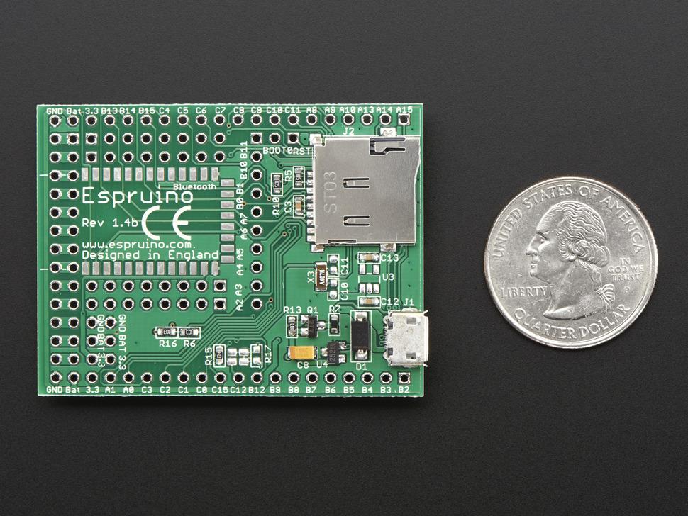Espruino maakt gebruik van een webgebaseerde IDE en functioneert als een traditioneel board , maar verbruikt minder stroom dan Linux-moederborden. Het beschikt over een overvloed aan I/O-pinnen en kan dienen als I/O- board voor pc's, Macs of Rasp Pi's, allemaal zonder voorafgaande programmering. Pak het gewoon uit en ontketen het potentieel.