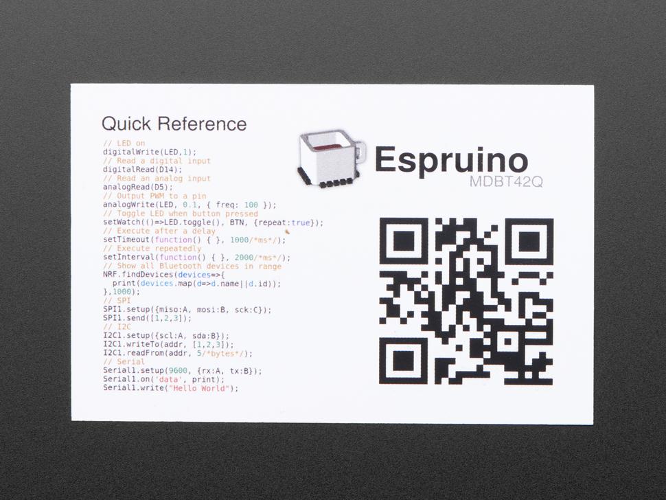 Functies omvatten de voorgeïnstalleerde open source JavaScript-interpreter Espruino, die zelfs beginners direct aan de slag kan. Dankzij de WebBluetooth-ondersteuning voor een IDE is programmeren eenvoudig en toegankelijk, direct uit de doos.