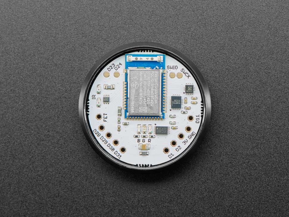 De specificaties omvatten een nRF52832 Bluetooth Low Energy SoC (Cortex M4, 64 kB RAM, 512 kB flash), meerdere GPIO's met PWM, SPI, I²C, UART en analoge input, evenals een 200 mA FET- output . Sensoren omvatten een LIS3MDLTR-magnetometer, een LSM6DS3TR-C accelerometer /gyro en een PCT2075TP-temperatuursensor.