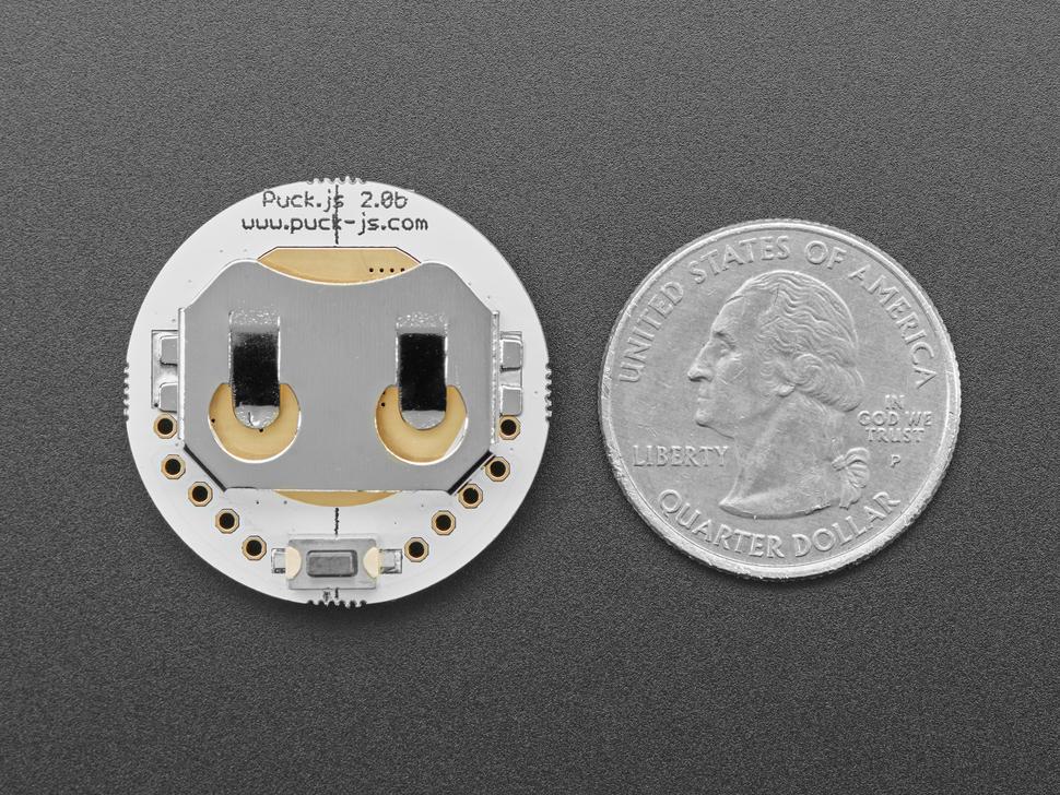 De Espruino Puck.js v2 is een compacte, energiezuinige Bluetooth-smartknop die programmeerbaar is met JavaScript. Hij beschikt over een speciale board en de nieuwste Nordic-chip, met Bluetooth LE, NFC, een magnetometer, een temperatuursensor, RGB-leds en infraroodfuncties, allemaal verpakt in een klein siliconen case .