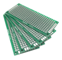 Een set van 5 handig experimenteer prints van 3x7cm dat dubbelzijdig is geëtst. Doordat de prints aan beide kanten verbinding kunnen maken, is het zeer makkelijk om verbindingen te leggen. De prints hebben 24 x 10 gaten met 8 pads aan beide kanten (niet verbonden). De dikte van de PCB is 1,2mm.