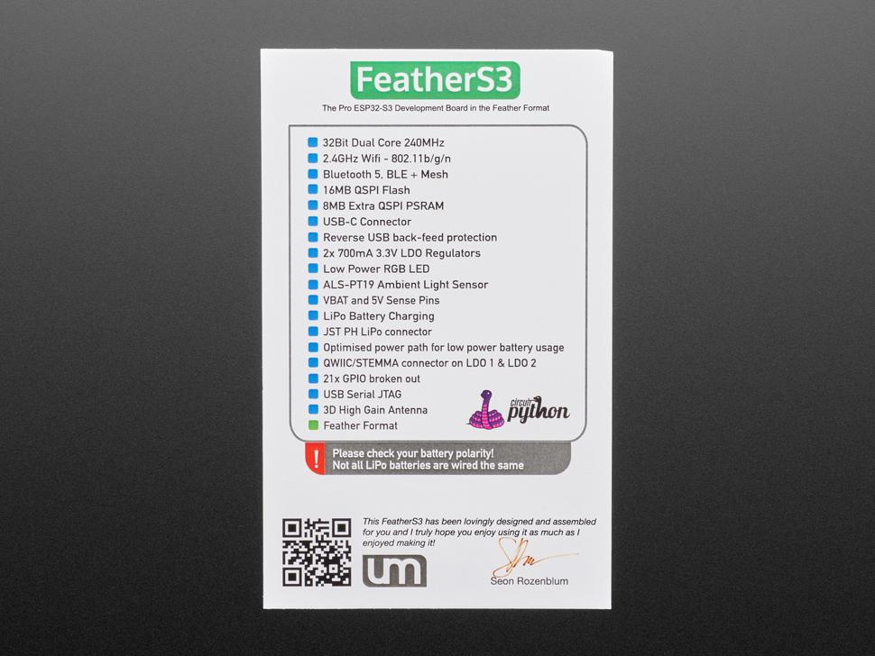 Adafruit FeatherS3 - ESP32-S3 board van Unexpected Maker