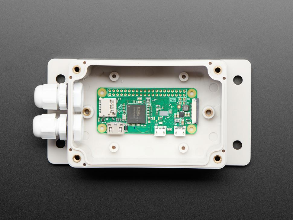 De behuizing measures 100 x 68 x 36 mm aan de buitenkant. Je kunt er een Adafruit Metro, Raspberry Pi zero , feather of een Perma-Proto van een halve grootte in kwijt, maar de grotere Raspberry Pi 's met USB en Ethernet-aansluitingen passen er niet in.