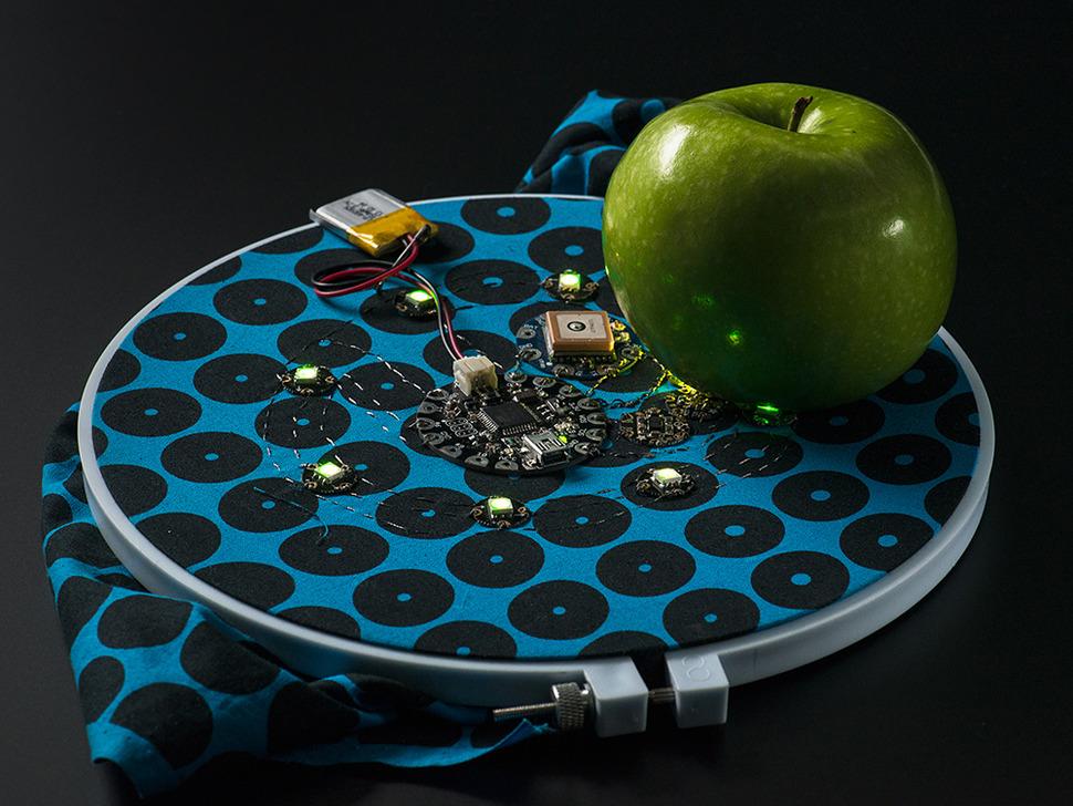 Maak verbinding met een Flora via I2C en onze voorbeeldcode zal u snel op weg helpen met 4 kanaals metingen. Een gedetailleerde tutorial is in de maak, bekijk tot die tijd onze Arduino- library en volg onze tutorial om te installeren. Naai de sensor vast door 3V aan te sluiten op 3V Flora- output , ground op gemeenschappelijke ground , SCL op I2C Clock en SDA op I2C-gegevens op je Flora. Alle pinnen zijn uitgelijnd en u kunt een andere sensor koppelen, zoals een lux-sensor of accelerometer . Start de IDE opnieuw en selecteer het voorbeeld Flora-schets en begin al je favoriete fruit naast het sensorelement te leggen!