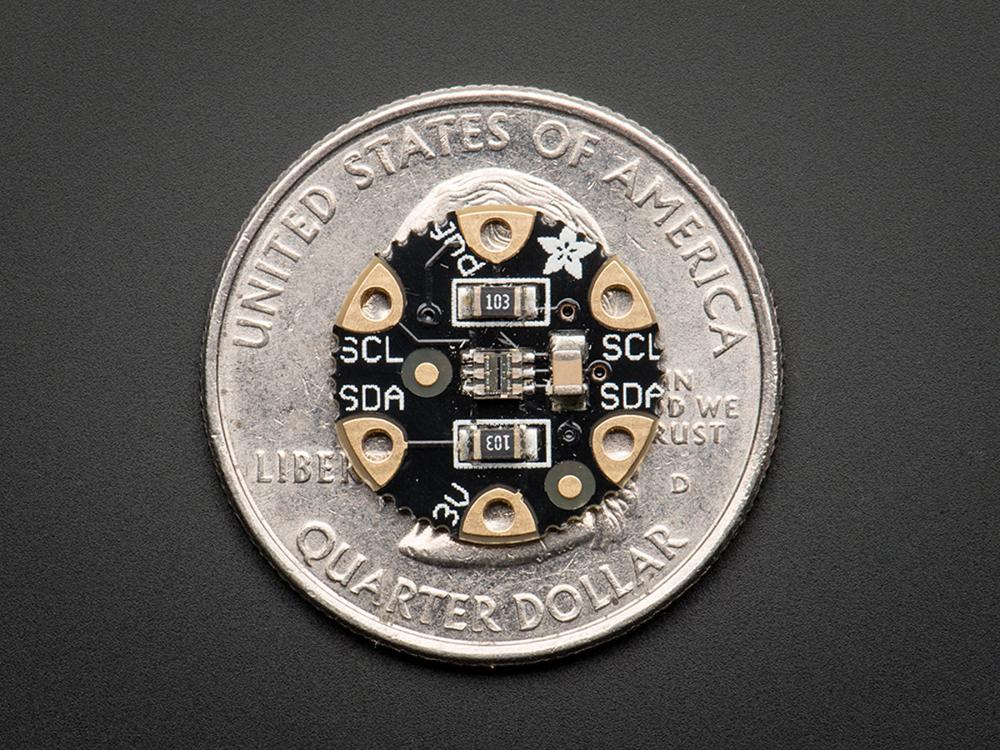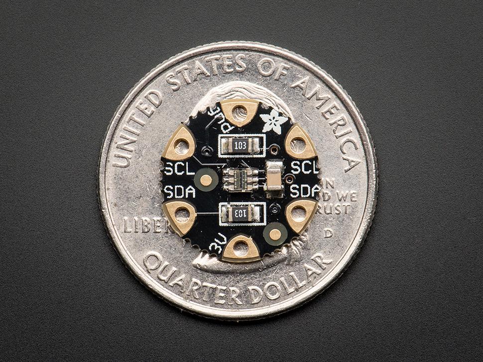 Add light-reactive sensing to your wearable Flora project with this high precision Lux sensor. The TSL2561 luminosity sensor is an advanced digital light sensor, ideal for use in a wide range of light situations. Compared to low cost CdS cells, this sensor is more precise, allowing for exact lux calculations and can be configured for different gain/timing ranges to detect light ranges from up to 0.1 - 40,000+ Lux on the fly. The best part of this sensor is that it contains both infrared and full spectrum diodes! That means you can separately measure infrared, full-spectrum or human-visible light. Most sensors can only detect one or the other, which does not accurately represent what human eyes see (since we cannot perceive the IR light that is detected by most photo diodes)