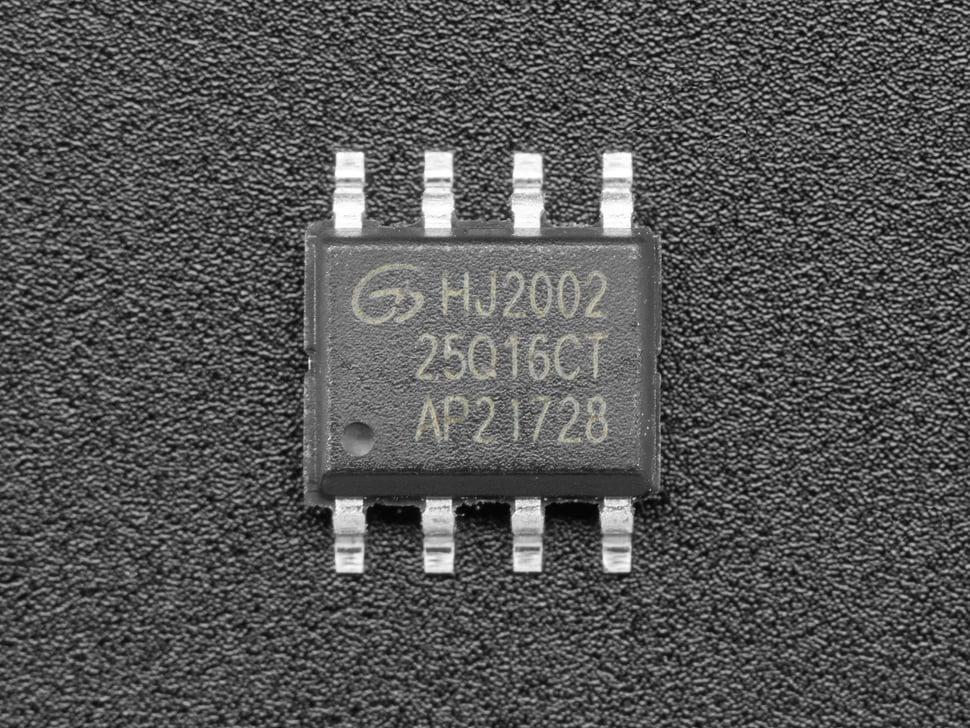 Deze worden vaak gebruikt op CircuitPython-boards en slaan code en assets op, zoals animaties, lettertypen, afbeeldingen, configuraties en audioclips. Ze zijn ook perfect voor het toevoegen van dataloggingopslag. Deze specifieke chip biedt 2 MByte aan niet-vluchtige opslag (16 megabit) en wordt ondersteund door CircuitPython en de Arduino SPI Flash library .